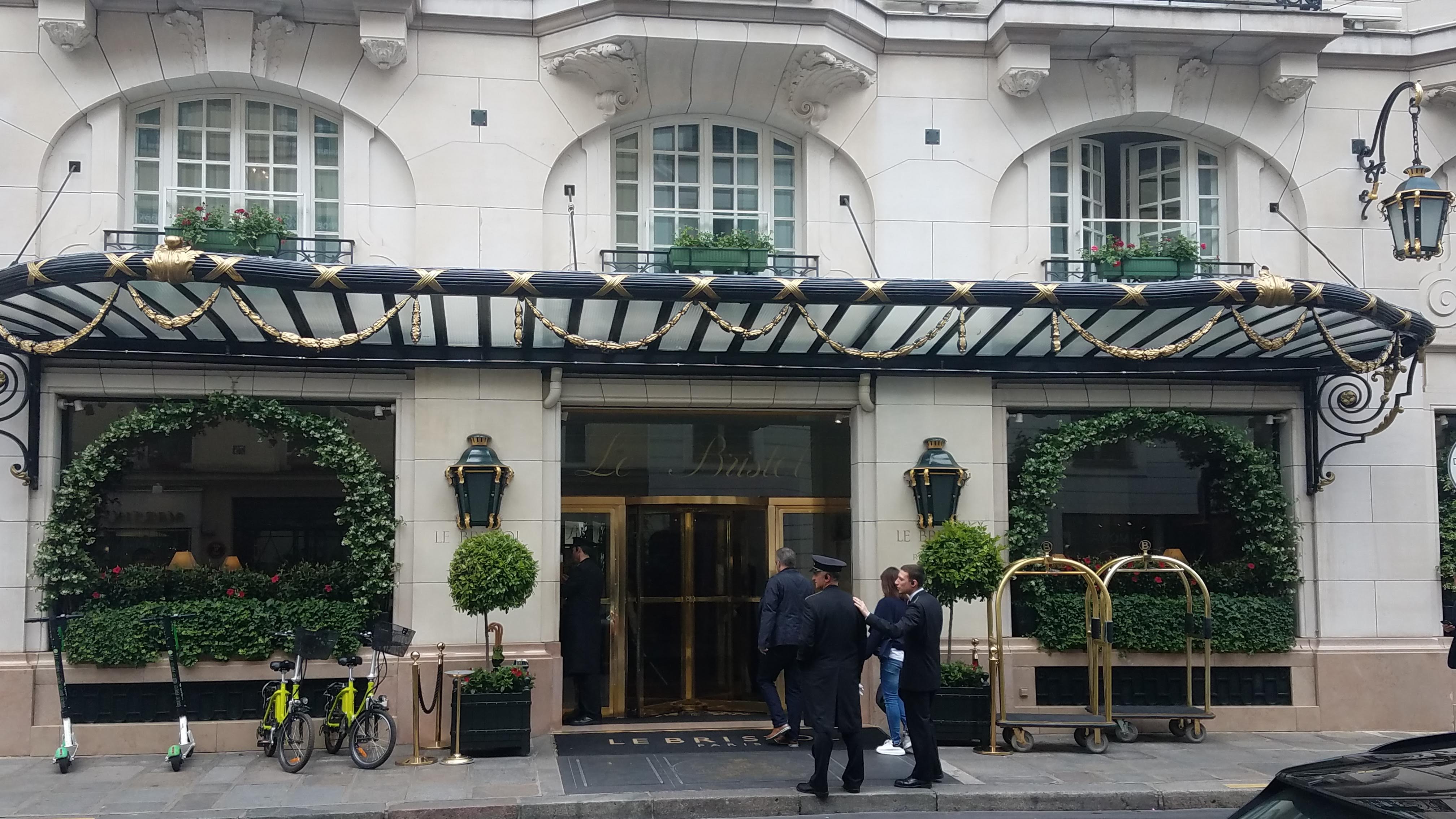The Bristol Hotel in Paris, where Steve Bannon set up shop during the 2019 campaign for the European Union parliamentary elections, receiving reporters and officials of Marine Le Pen’s far-right Rassemblement National party. (Photo by A.M. Stan for Right Wing Watch)