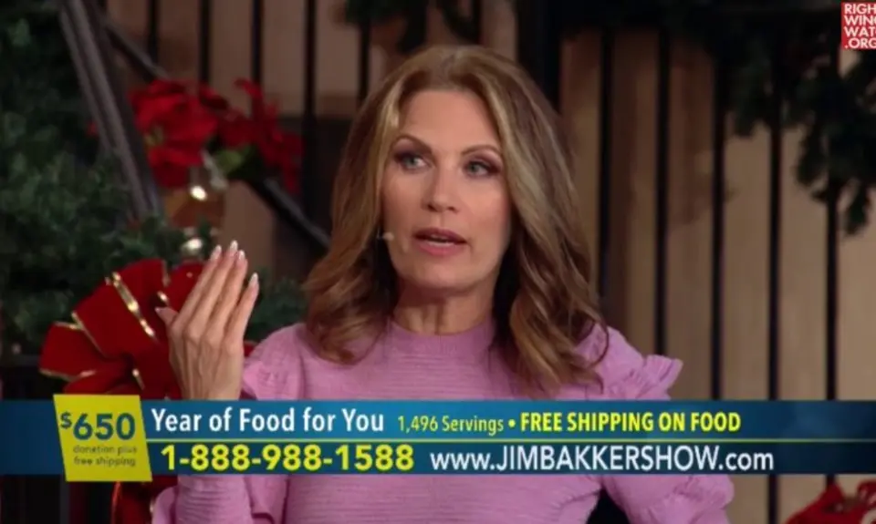 Former Minnesota congresswoman and current "pastor to the United Nations" Michele Bachmann joined End Times prepper pastor Jim Bakker for a series of television programs that aired last week, during which she revealed that she is currently considering making a run for the U.S. Senate seat that is set to be vacated by Al Franken.