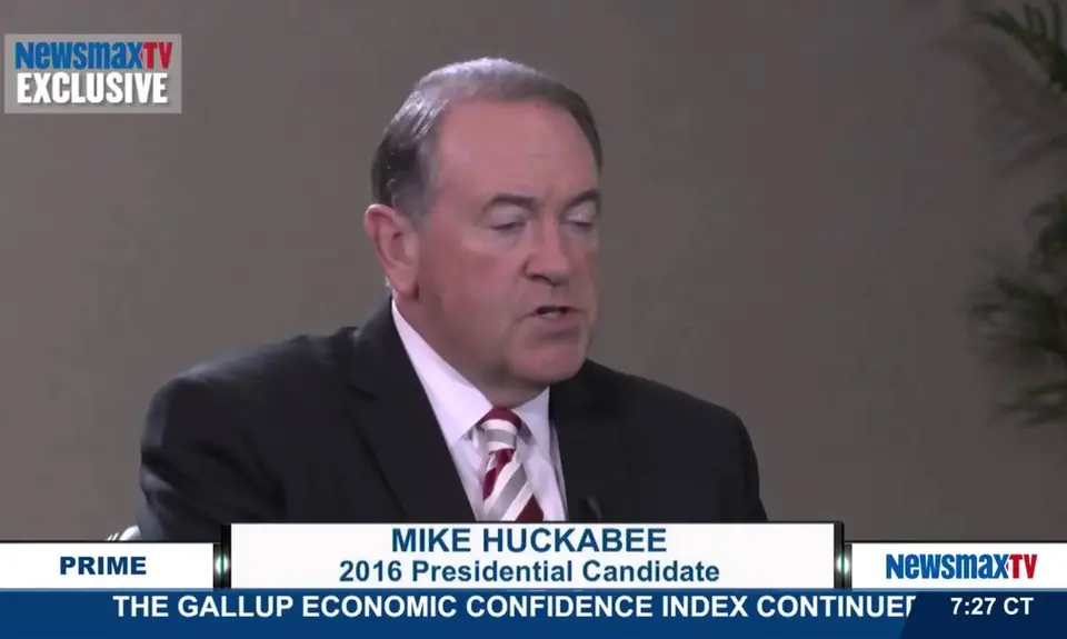 In clip of an interview with Newsmax TV that was posted online today, Mike Huckabee criticized the Pentagon’s move to end the ban on open military service by transgender people, saying that openly transgender service members would “affect morale” because “men are men and women are women.”