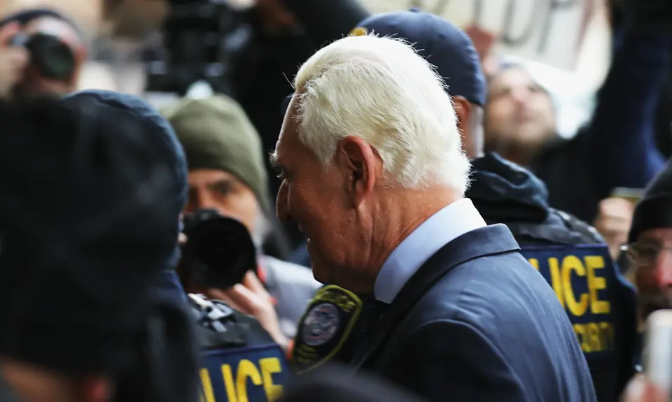 Roger Stone, a longtime GOP operative and former campaign adviser for President Donald Trump, arrived at the U.S. District Court in Washington, D.C., this morning for an arraignment hearing following his arrest last Friday on one count of obstruction, one count of witness tampering, and five counts of providing false statements in Special Counsel Robert Mueller’s investigation into Russian interference in the 2016 election.
