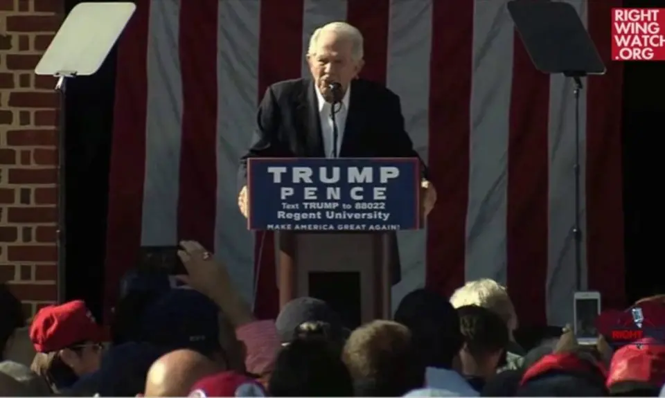 Donald Trump is holding a campaign rally in Virginia today at Regent University, the Christian college founded by Pat Robertson. Since Robertson has been a vocal supporter of the GOP nominee, it was no surprise to see him deliver some short remarks to open the rally, telling the bookies in Las Vegas not to bet against Trump winning the election next month.