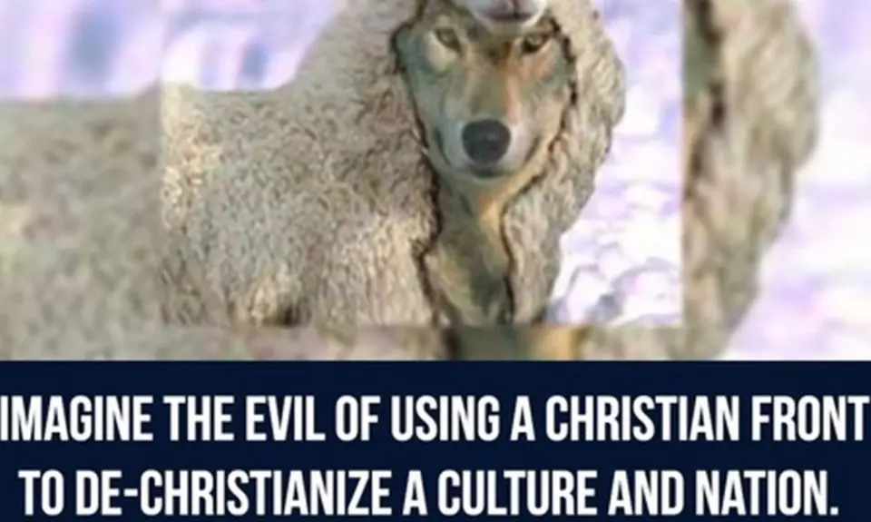 “Imagine the evil of using a Christian front to de-Christianize a culture and nation,” the video states.