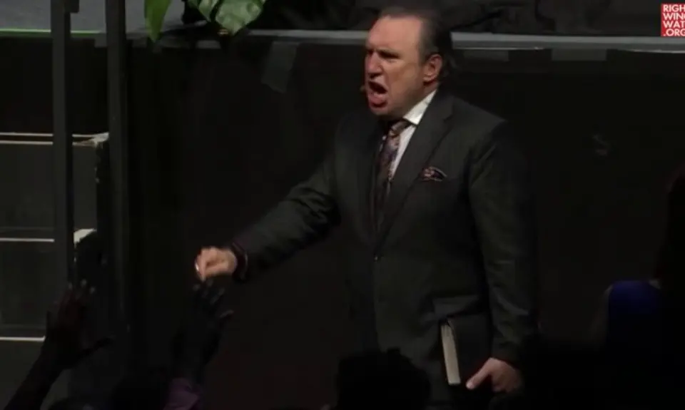 "I take authority over the spirit of deception that controls the media and Hollywood and all of the entertainment industry," he shouted. "I bind you even now, I render you powerless and ineffective. May your voice grow dim. In the name of Jesus, may the scales fall off the people of America, off of their eyes, may their ears come unstopped. May the lies be exposed for what they are."