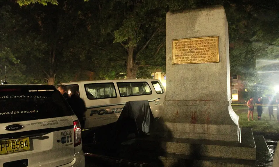 Monday night, protesters tore down the “Silent Sam” Confederate monument at the University of North Carolina-Chapel Hill, which the Winston-Salem Journal called a “focus of protests and vandalism for decades” that UNC has spent hundreds of thousands of dollars per year protecting. Now far-right militia groups, white nationalists and neo-Confederates are calling for counter-action.
