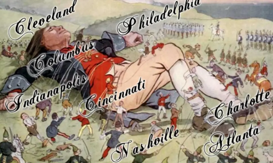 While in a conference in Cincinnati, Ohio Bob had a vision of a great man, who in the past had fallen asleep. He was lying on his back, half-covered in dirt, and his name was Gulliver. Little people from a place of little input had completely tied him down, and he was waking up from being asleep for the past 38 years. We can also call him (Gulliver) the Body of Christ. Bob saw that the head of this very large man was in Cleveland, Ohio, in a place called "Jacob's field."