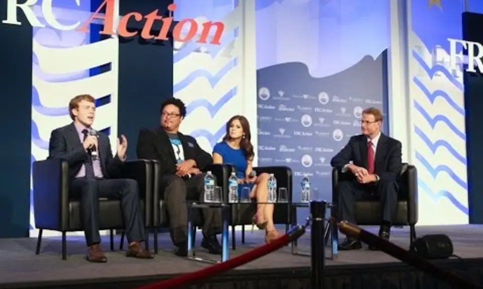 At this year’s summit, Bomberger participated in a panel moderated by Family Research Council president Tony Perkins with anti- abortion activist Lila Rose and South Carolina teen Roy Costner, who became a right-wing hero after reading the Lord’s Prayer at his valedictorian speech. Perkins introduced Bomberger, who is featured in Perkins’ new book “No Fear,” by giving a brief summary of his “extraordinary work” inspired by God: “Ryan and his wife, they took on the NAACP,” who were “targeting African-American babies and promoting abortion in [black] communities.”