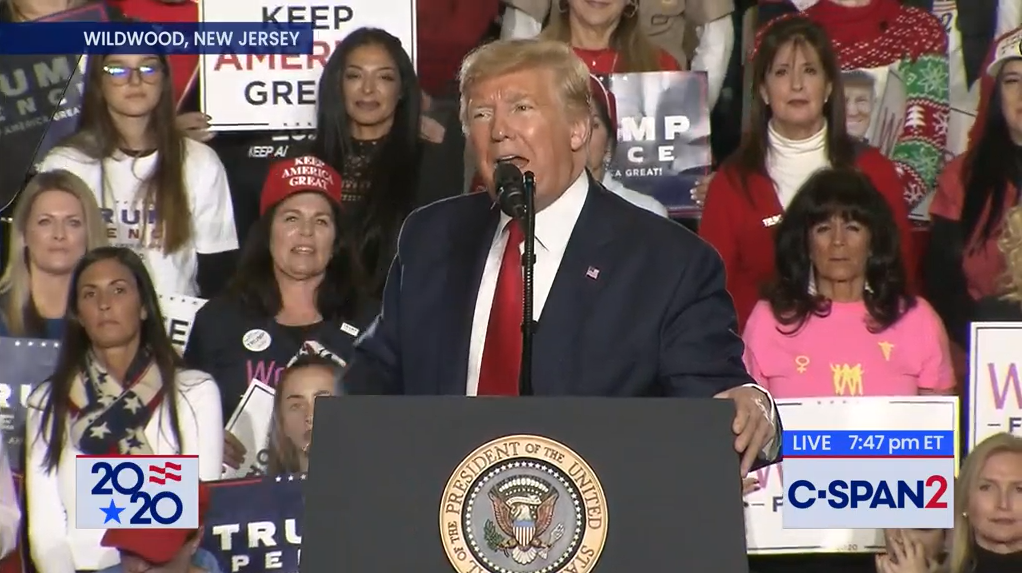 Screenshot of Trump's rally in Wildwood, New Jersey. (C-SPAN)