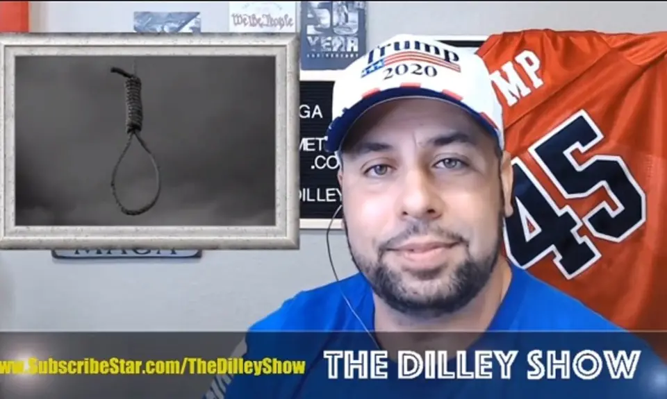 Pointing to a photo of a noose, Dilley declared that "there is one solution and one solution only to save America and I think you know what it is. It's a zero-sum game and if you don't have the stomach for it, I don't know what to tell you."