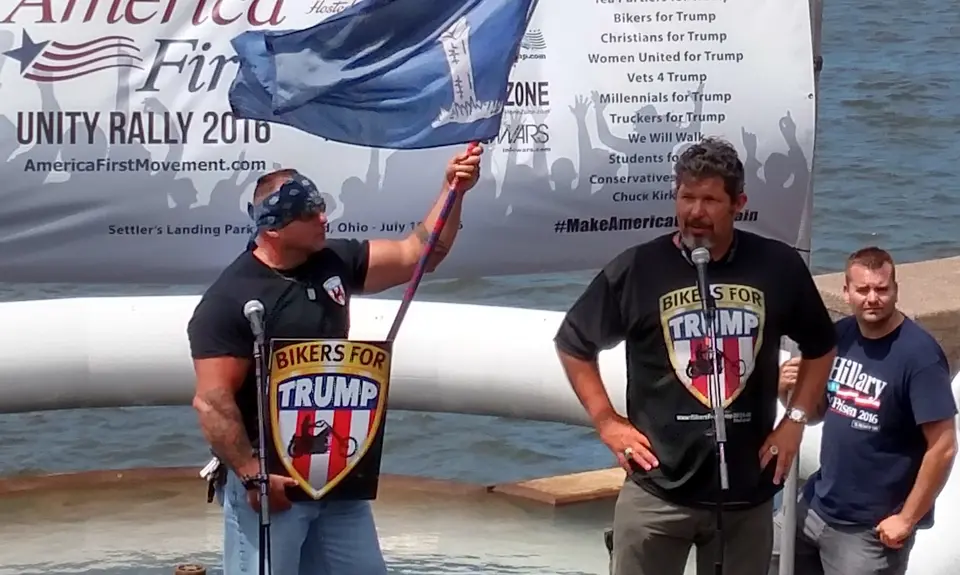 The group was also present in Cleveland during the Republican National Convention. Cox told Reuters before the convention that his group would "be doing a victory dance” over Trump's nomination but said “if the Republican Party tries to pull off any backroom deals and ignores the will of the people, our role will change.” In Cleveland, the group participated in the “America First Unity Rally” sponsored by Citizens for Trump along with conspiracy theorist radio host Alex Jones and right-wing political strategist Roger Stone. That rally had originally been planned to mobilize opposition to any attempt by GOP insiders to wrestle the nomination away from Trump, but as that possibility faded it became a right-wing victory party featuring, among many others, Breitbart’s self-described “dangerous faggot” Milo Yiannopoulos and gun advocate Jan Morgan, a frequent speaker at right-wing events who banned Muslims from her shooting range.