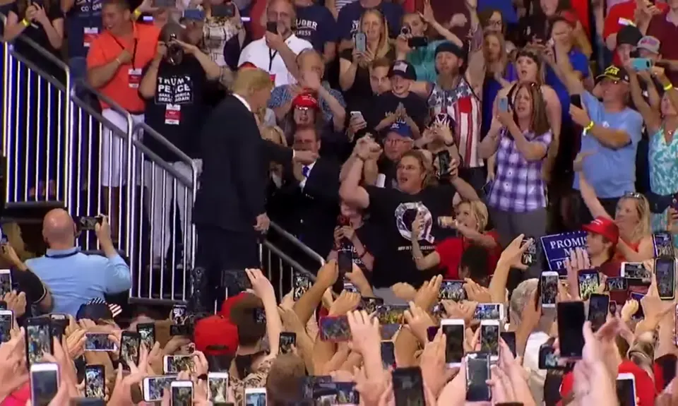 Followers of the conspiracy theory claimed that Trump gesturing to the cheering man wearing the QAnon shirt was irrefutable proof that the theory is real. Even the anonymous author of the Q posts noticed the man, posting “Now that’s what I call a VIP!”