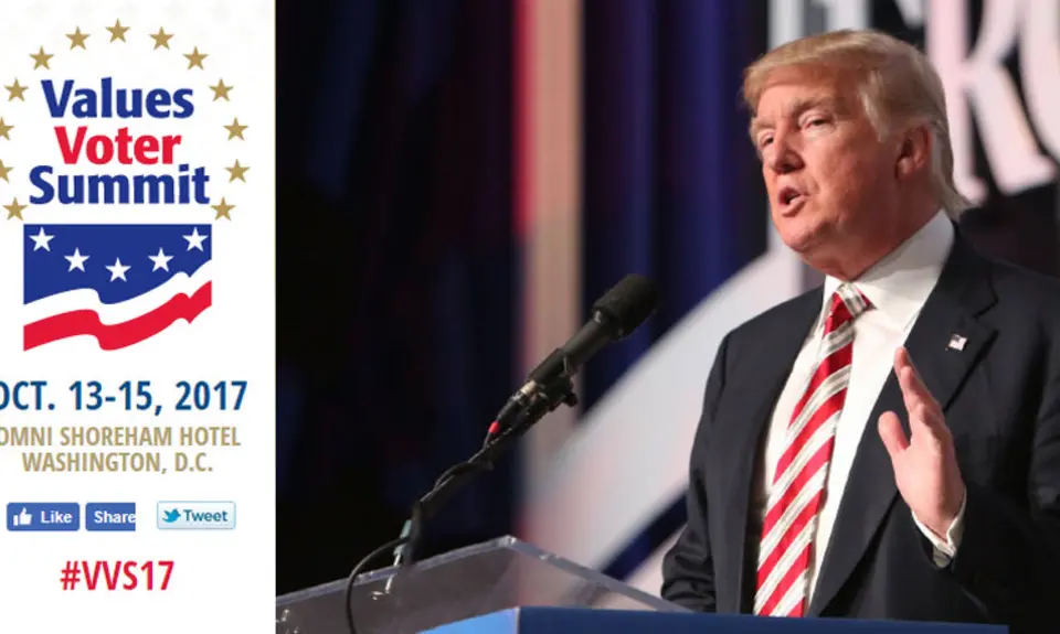 President Donald Trump will address the gathering on Friday, capping off a week in which he has called for the federal government to yank the broadcasting licenses of network television stations whose coverage displeases him. Trump, who campaigned at last year’s Values Voter Summit, will undoubtedly be showered with adulation from Religious Right activists who are thrilled with his far-right judicial nominees, his attacks on Planned Parenthood and women’s access to reproductive health care around the world, and his efforts to reverse progress toward legal equality for LGBT people.