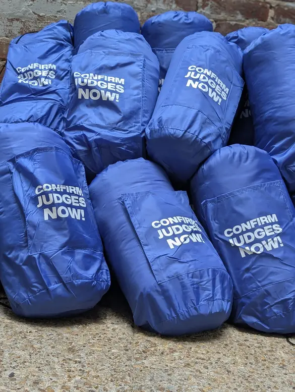 Helping confirm fair-minded judges is one of People For’s core missions, and this year we’re racing against the clock to see that all of President Biden’s pending nominees are confirmed. We knew we needed to send a message to senators that would inspire them to stay in – all night if needed – and confirm judicial nominees. Sleeping bags were the perfect vehicle to deliver the message in a meaningful and memorably way.